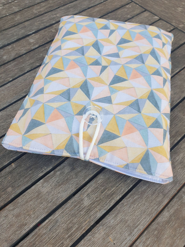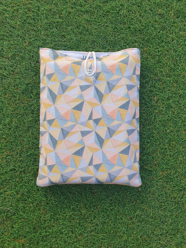 Funda de libro acolchado de cebras, realizada con tela 100% algodón exterior e interior. Rellena de guata de algodón para darle cuerpo y no abultar demasiado.