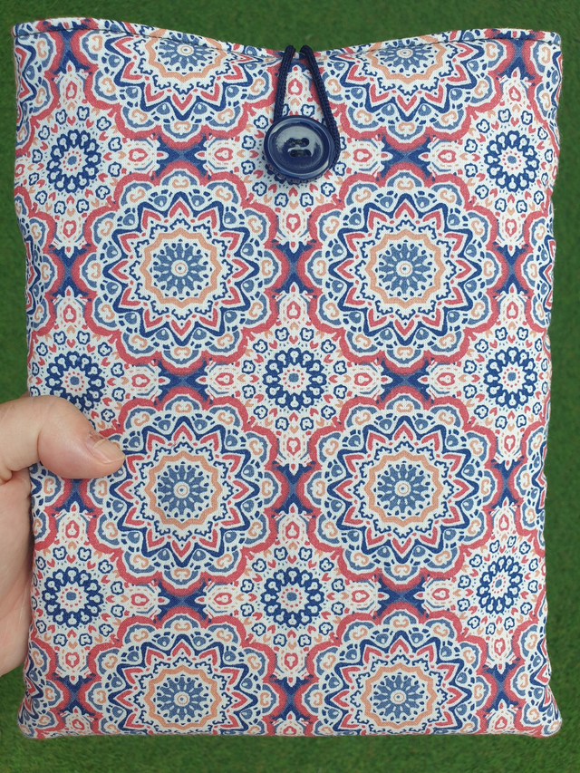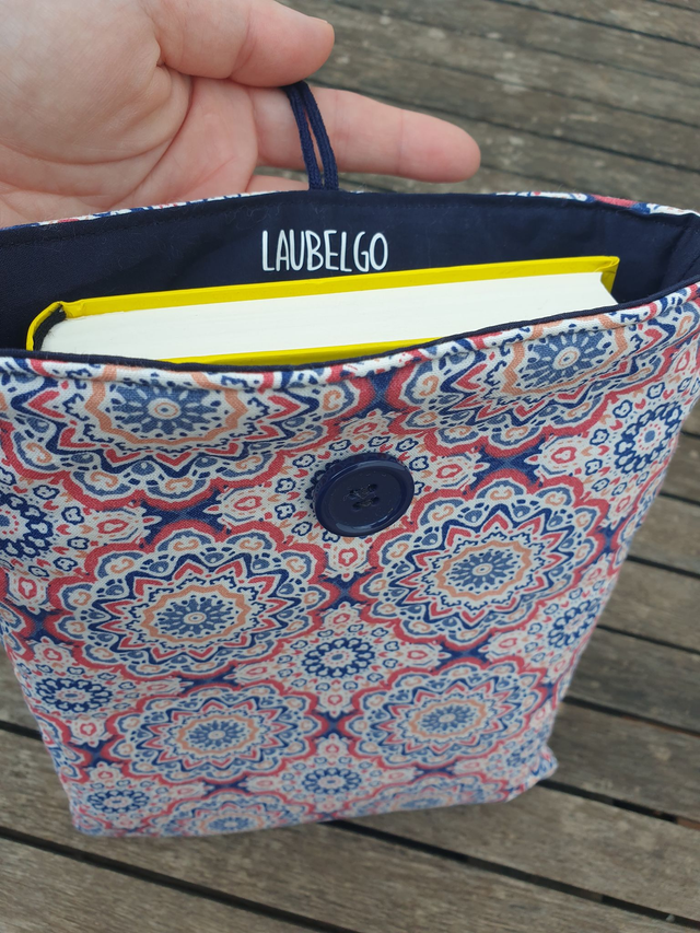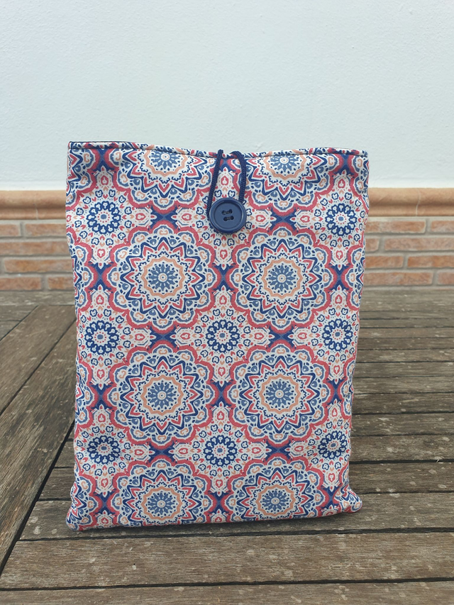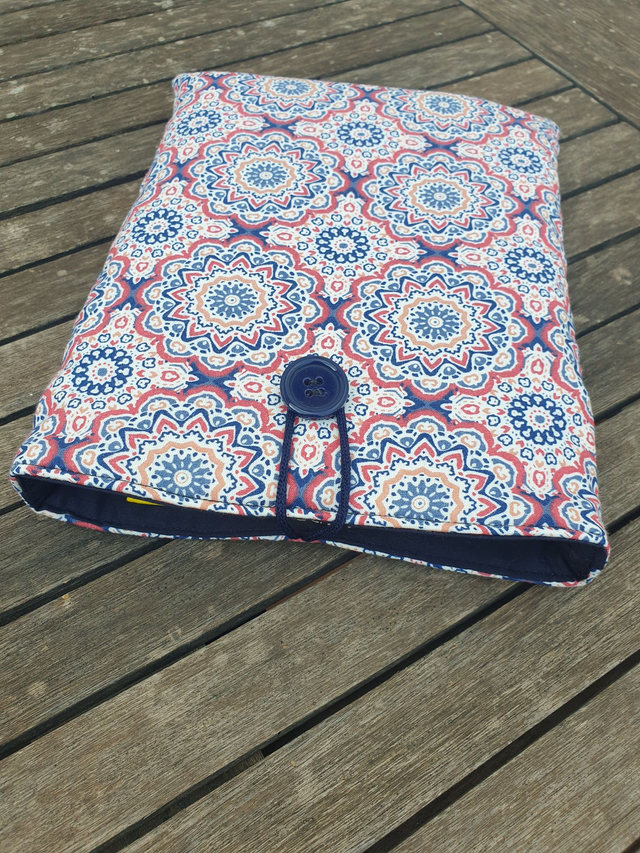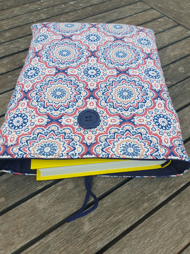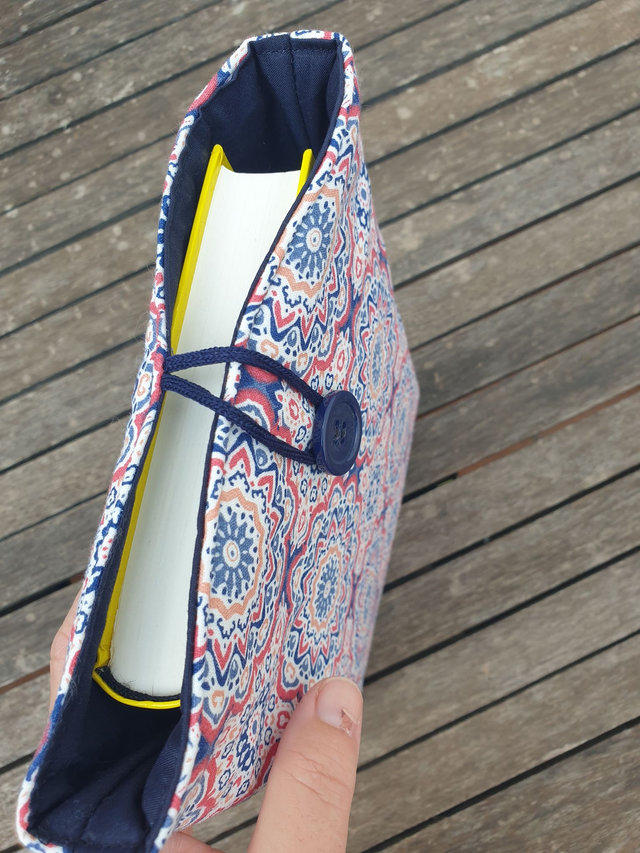 Funda de libro acolchado de cebras, realizada con tela 100% algodón exterior e interior. Rellena de guata de algodón para darle cuerpo y no abultar demasiado.