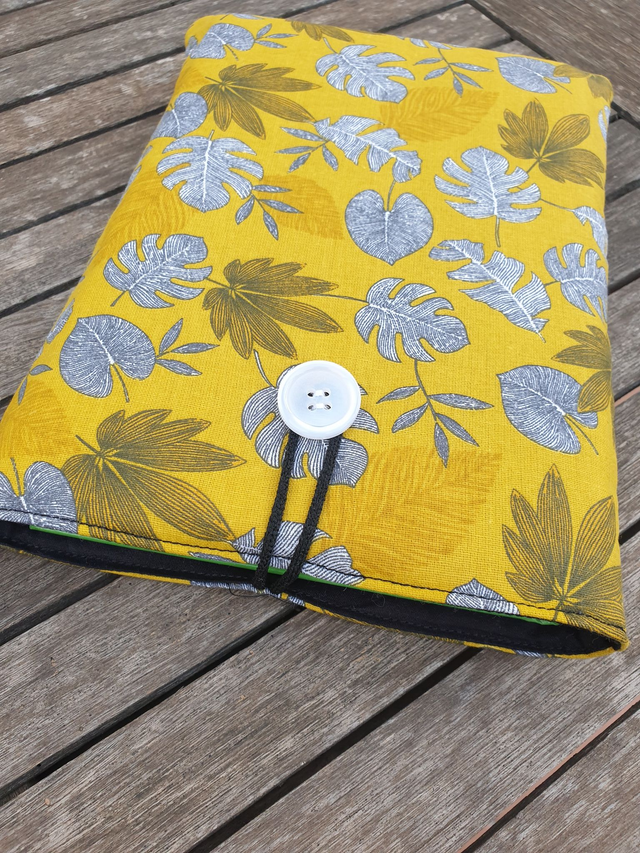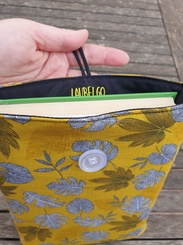 Funda de libro acolchado de cebras, realizada con tela 100% algodón exterior e interior. Rellena de guata de algodón para darle cuerpo y no abultar demasiado.