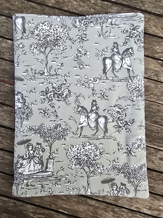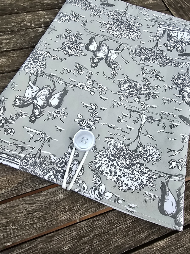 Funda de libro acolchado de cebras, realizada con tela 100% algodón exterior e interior. Rellena de guata de algodón para darle cuerpo y no abultar demasiado.